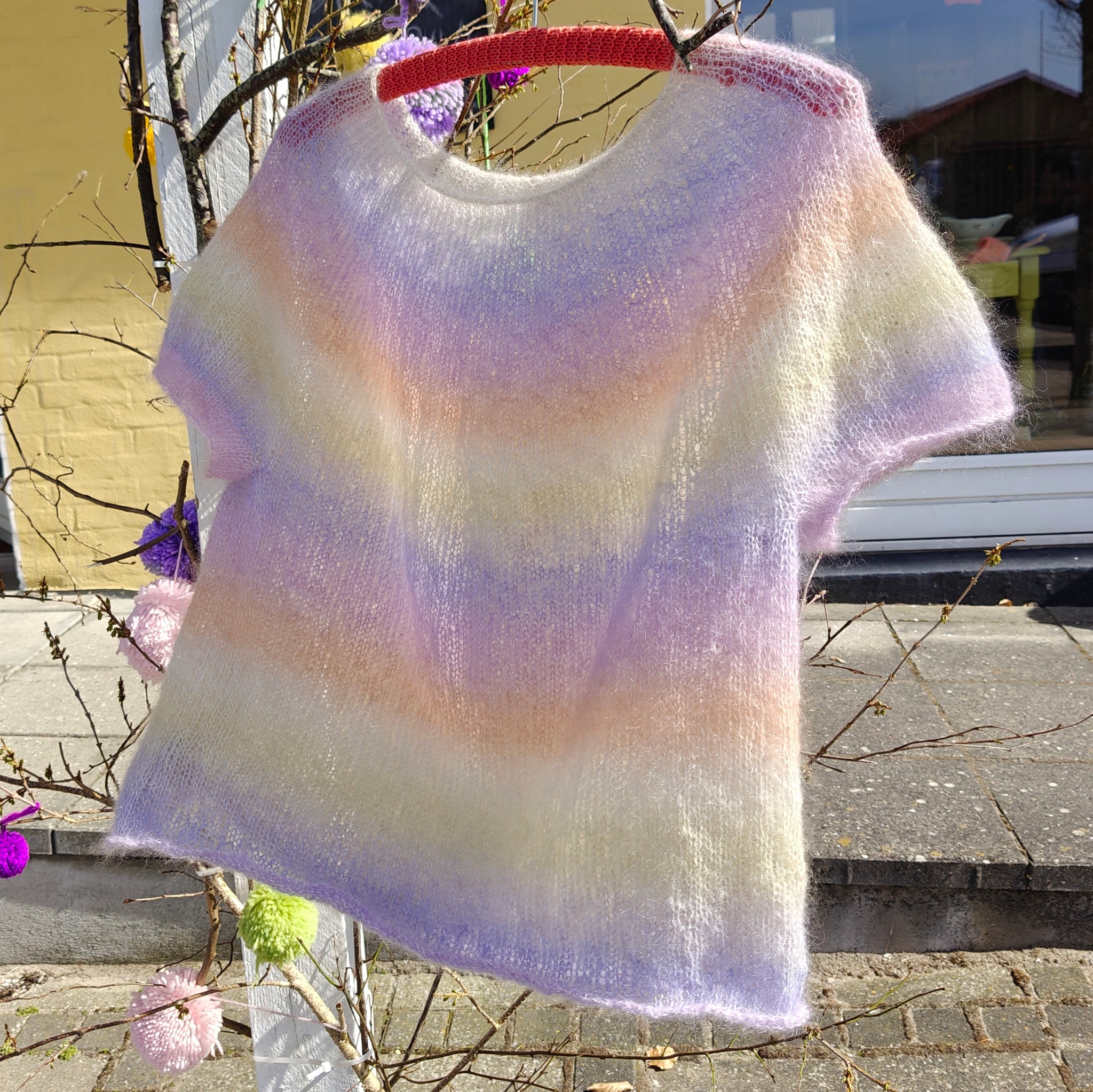 Flora Tee er en let og luftig bluse, strikket i 1 tråd "essentials - super kid mohair and silk" fra Rico Design.